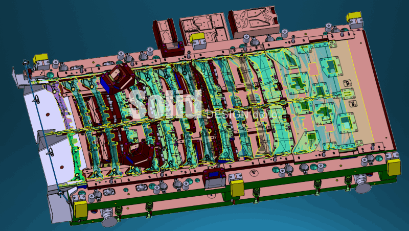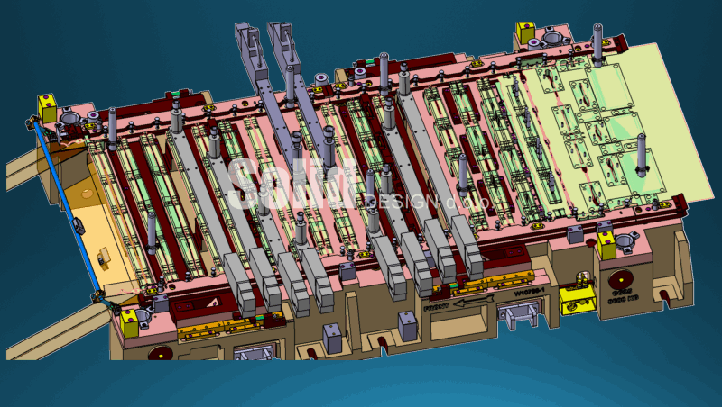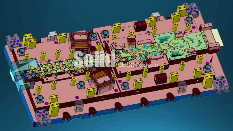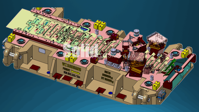 We design progressive tools for feeders as well as transfer multi-stage tools for fully automatic gripper/suction rod production. When designing, we use our rich experience, customer project specifications and standards. We use standards from all well-known car manufacturers and tool shops: VW standards (Audi, Škoda, Porsche, Seat...), BMW, Daimler, Laepple, Magna, Voestalpine, Schweikert, Gestamp, Tower, etc. We design drawing tools, forming tools, cutting tools, progressive tools as well as tools for tailored blanks.